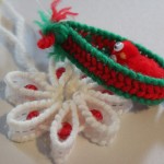 Fourth Ornament of Christmas (plastic canvas poinsettia & birdie)