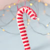 Gauge & dimensions: 22 sts & 28 rows over 4 inches, knit in stockinette stitch. Finished ornament measures 5.5 inches from tip to tip before bending into candy cane shape.